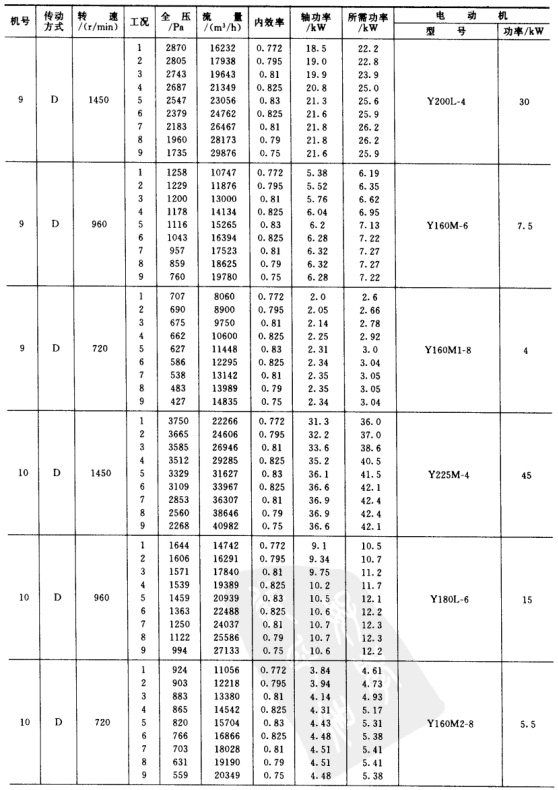 3)風(fēng)機(jī)的傳動(dòng)方式為D式