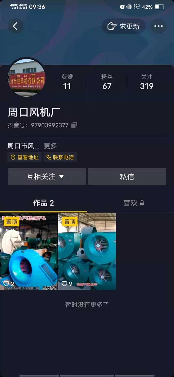 抖音名稱:周口風(fēng)機(jī)廠,抖音號為:97903992377。