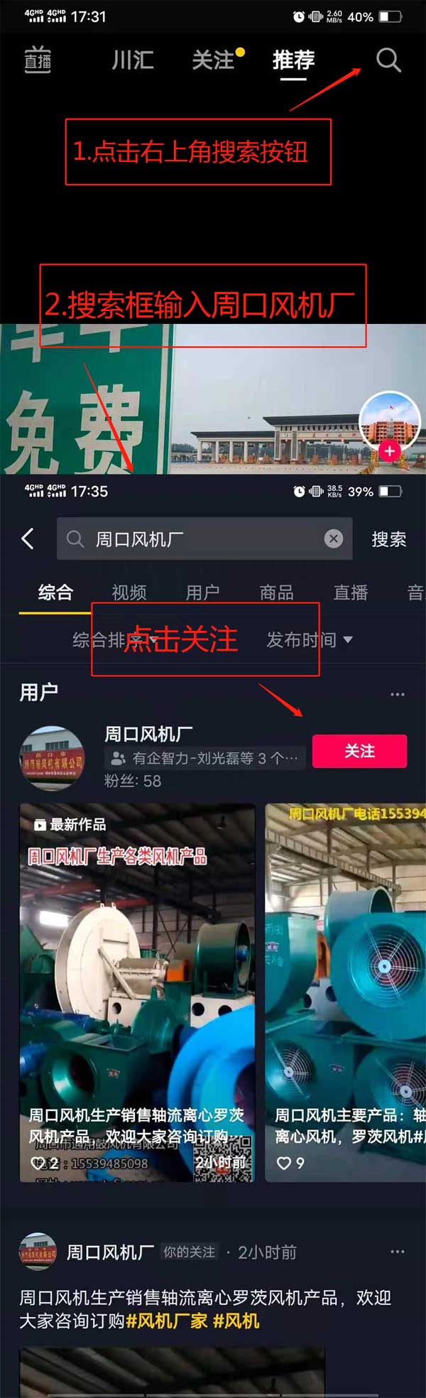 方法二:打開抖音APP,在右上角搜索欄輸入:周口風(fēng)機(jī)廠,或者輸入抖音號:97903992377。
