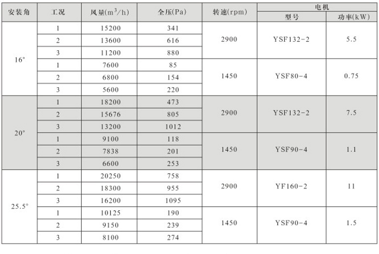 DTF(R)-3.15(6葉)系列地鐵、隧道軸流風(fēng)機(jī)性能表