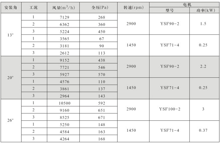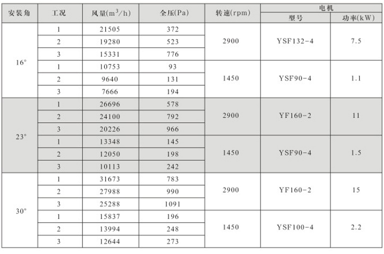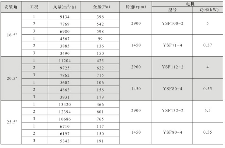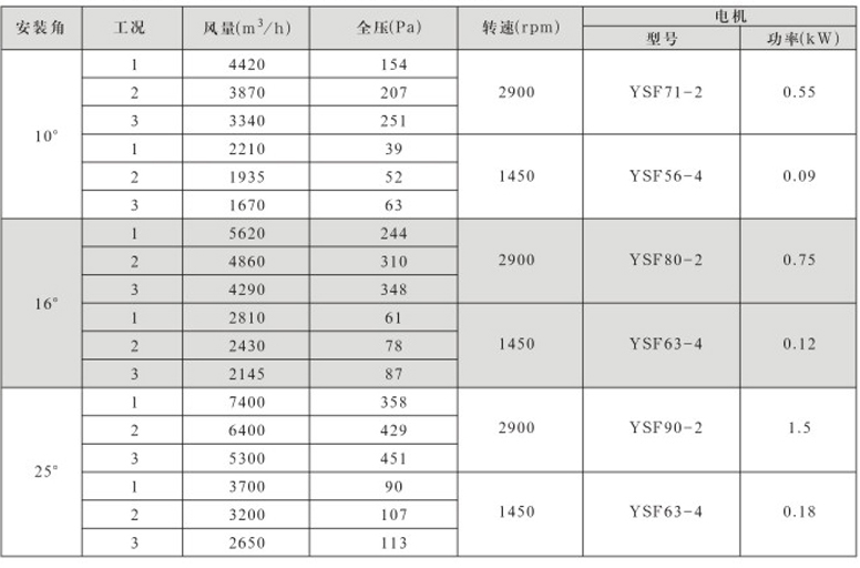 DTF(R)-4.5(6葉)系列地鐵、隧道軸流風(fēng)機(jī)性能表